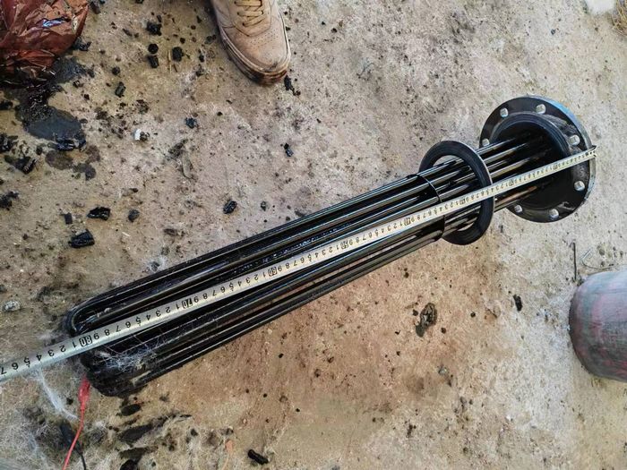 有客戶問我,之前在別的地方買的導熱油加熱管為什么老是擊穿,裝上去用不了幾個月就壞了,讓我們給他分析下原因。然后我問他要了之前用的電加熱管的相關參數以及壞的導熱油加熱管圖片(如下圖)。